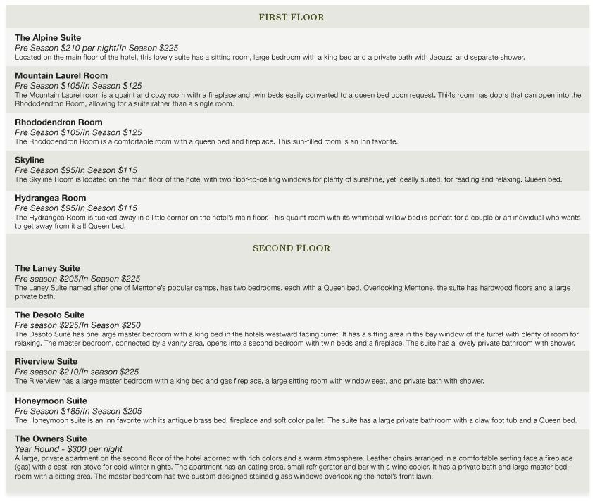 Welcome to the Mentone Springs Hotel Accommodations and Reservations page.